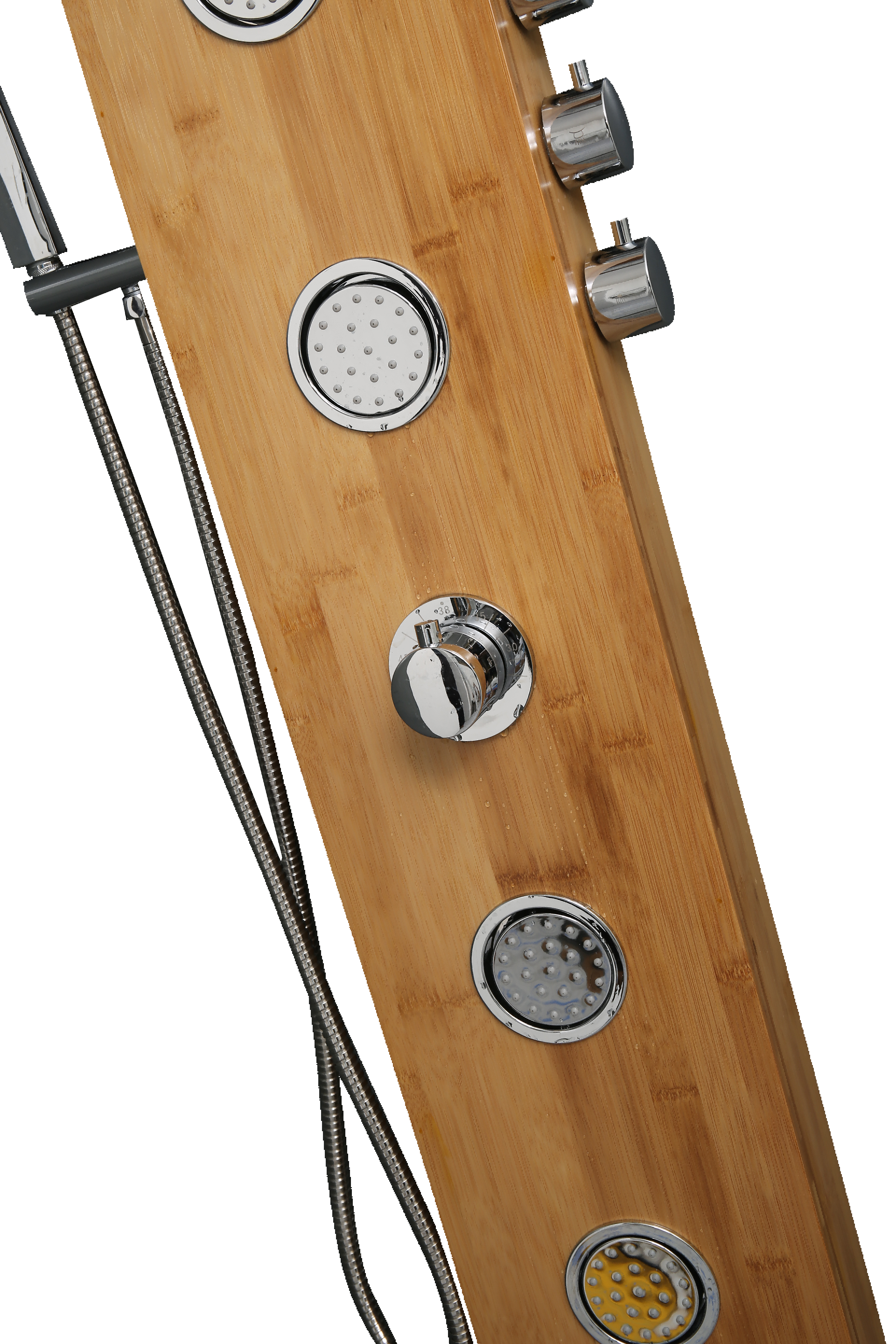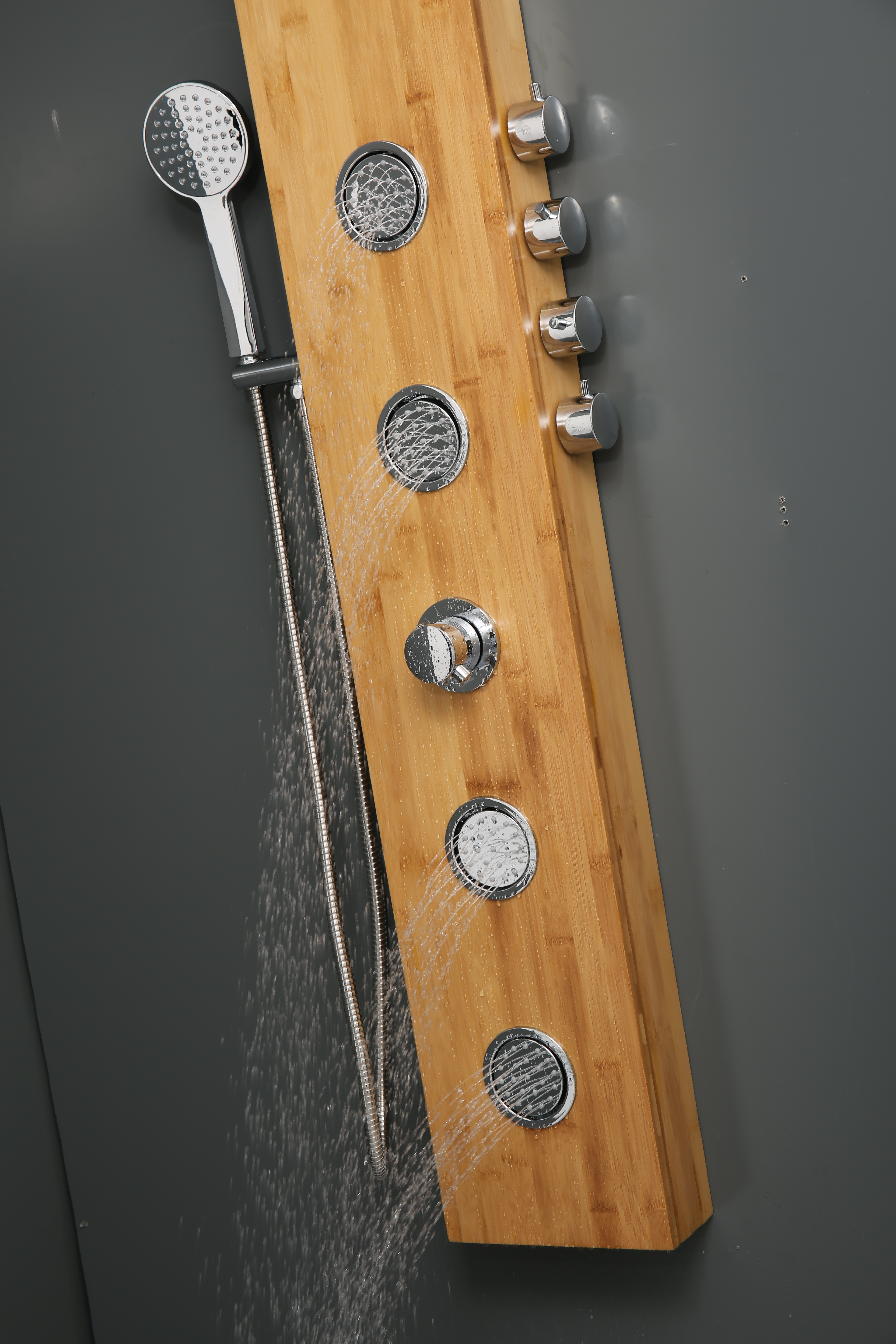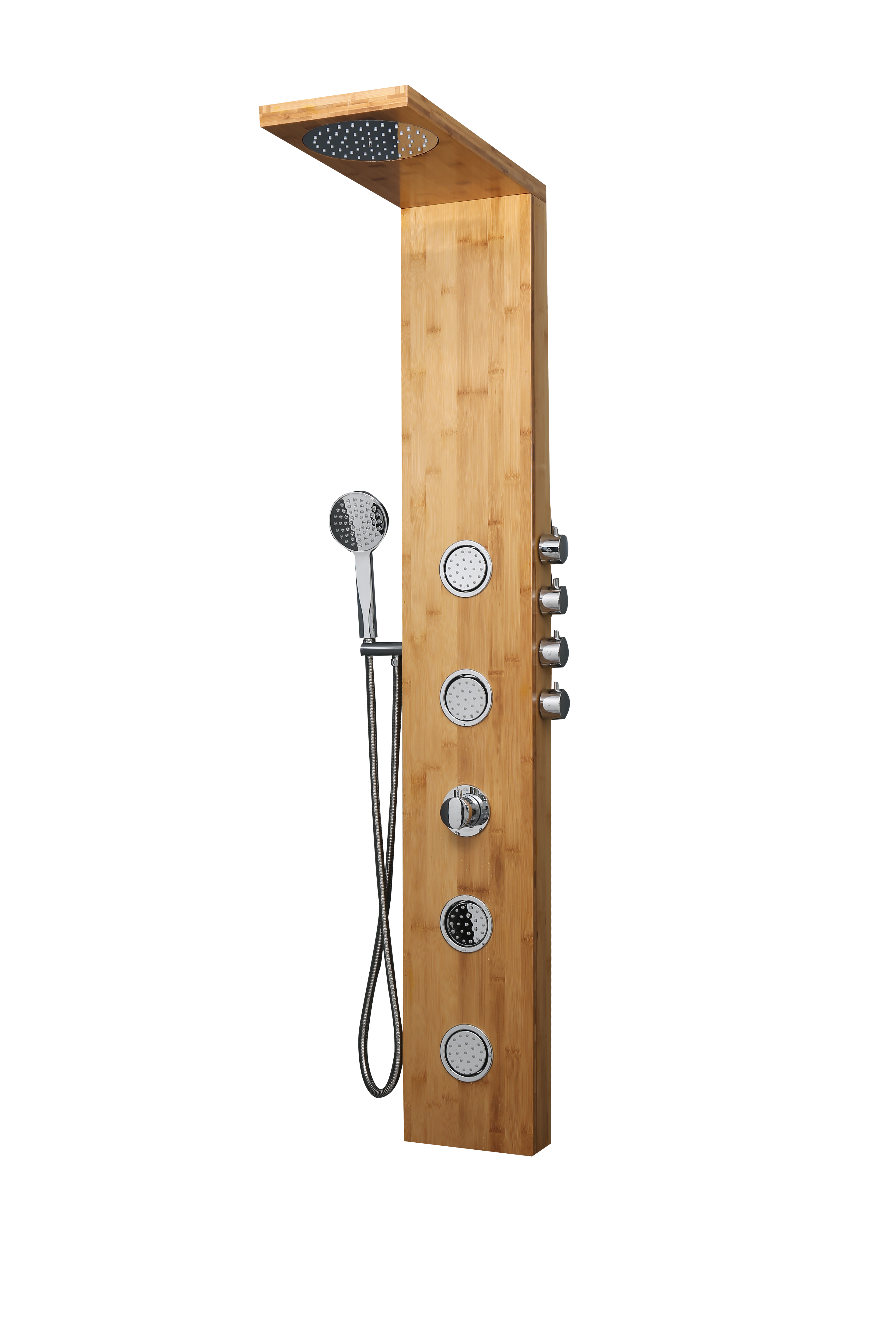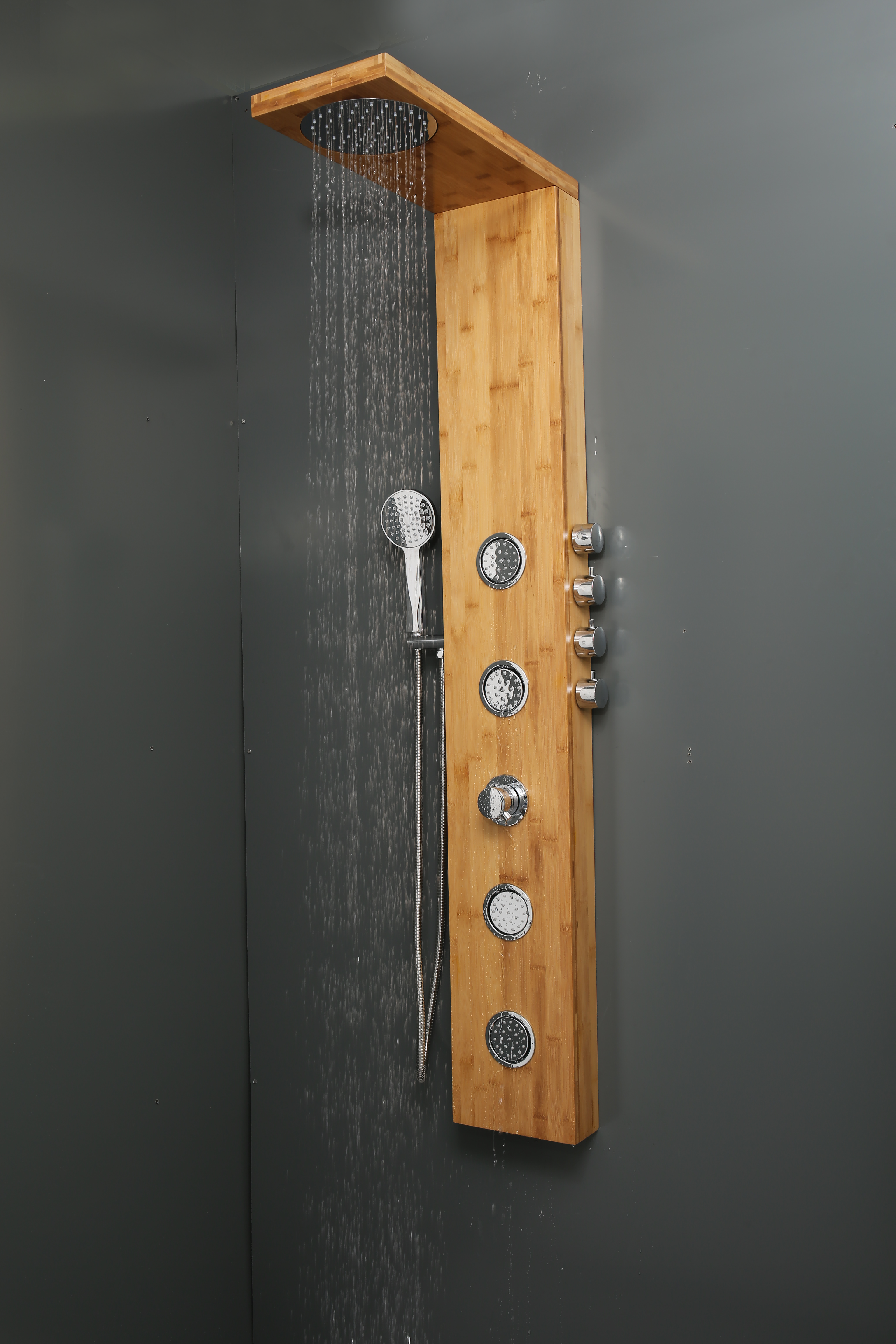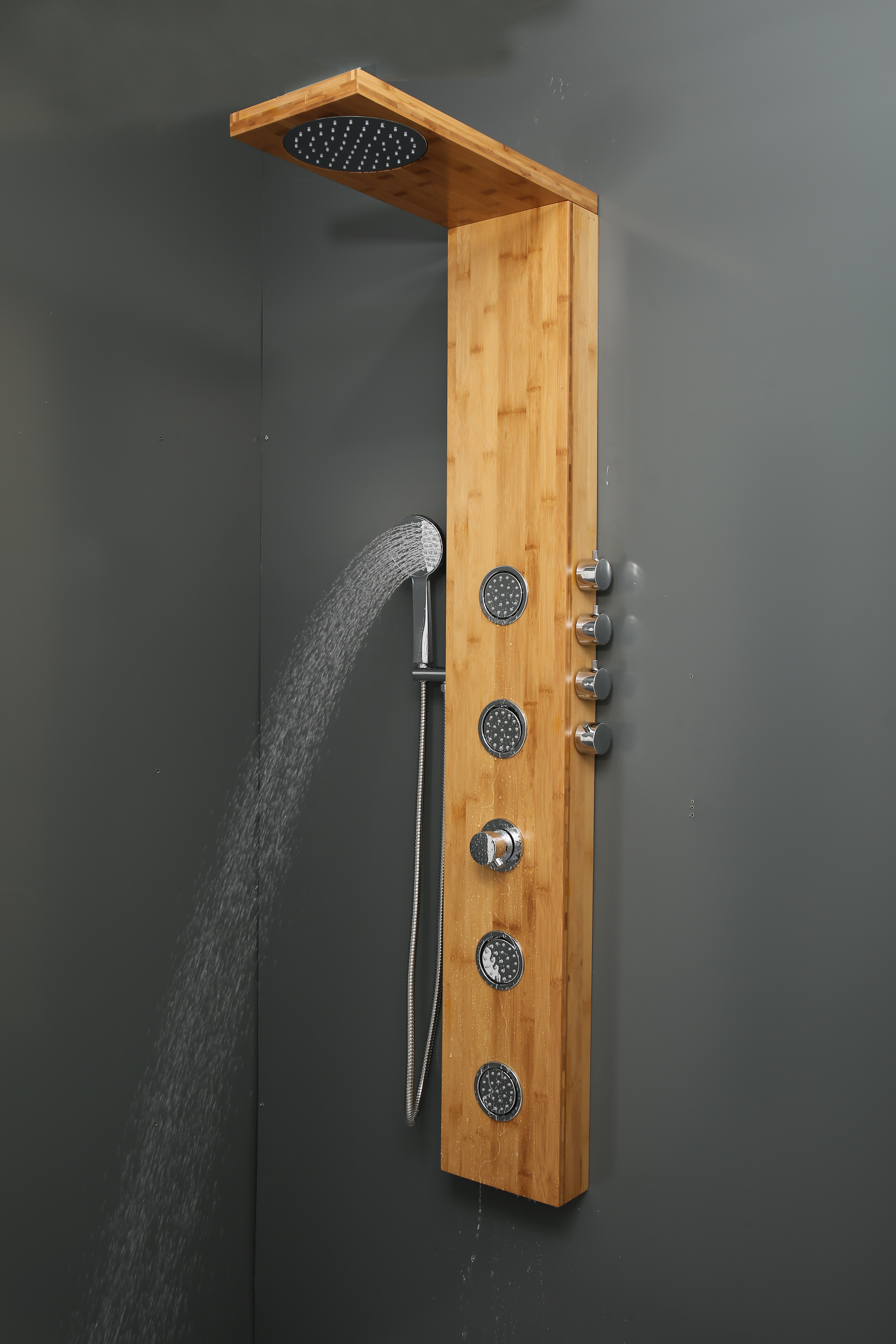 Bring a touch of natural elegance and modern functionality to your bathroom with the China Supplier Head Panel Bamboo Shower Panel. Designed to merge contemporary style with durable performance, this shower panel features a premium head system that delivers a soothing, spa-inspired shower experience. Its bamboo-inspired design adds a warm, organic aesthetic, perfectly complementing modern and eco-conscious interiors. Available in multiple refined finishes—including Chrome (CH), Brushed Nickel (BN), Matte Black (MB), Brushed Gold (BG), and Oil-Rubbed Bronze (ORB)—this panel can be customized in color, packaging, or branded with your logo, making it ideal for both residential and commercial applications. Built with a high-quality cartridge rated for up to 500,000 cycles and rigorously pressure-tested from 20 PSI to 60 PSI, it ensures consistent water flow at 1.8GPM or 2.2GPM while providing long-lasting reliability. Every unit undergoes strict quality control and comes with a 5-year warranty, combining aesthetic appeal, robust construction, and effortless maintenance into a sophisticated, functional centerpiece for any modern bathroom.
