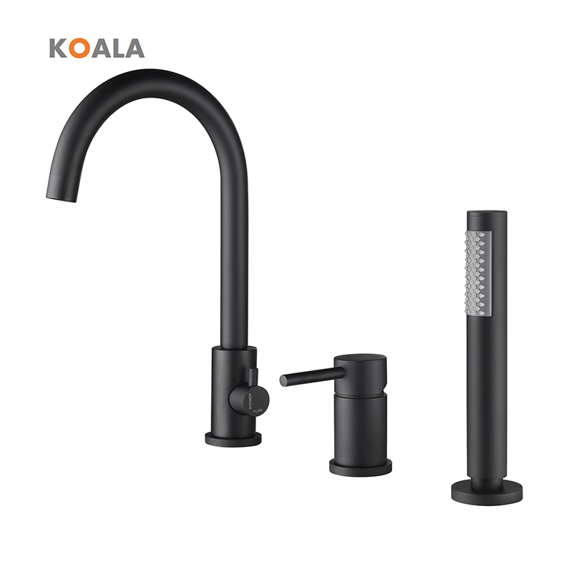 This premium bathtub faucet set from Koala is a perfect fusion of modern design, cutting-edge functionality, and exceptional durability, making it an outstanding choice for those seeking elegance and convenience in their bathroom. Its sophisticated matte black finish delivers a bold, contemporary look that effortlessly complements a wide range of bathroom styles, from minimalist to luxurious. More than just stylish, the finish is engineered to resist fingerprints, water stains, and scratches, ensuring that the faucet retains its pristine appearance over time with minimal maintenance.