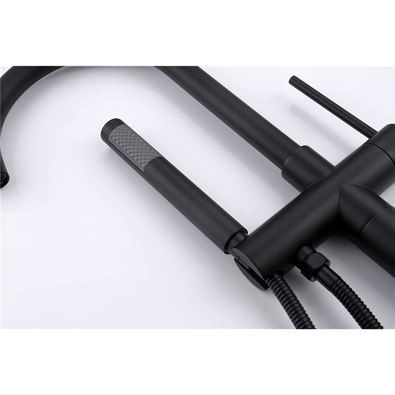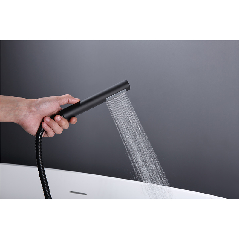 The design is sleek and minimalist, with a high-arching gooseneck spout that exudes elegance and ensures optimal clearance for easy filling of even the largest bathtubs. The spout is engineered to deliver a smooth, aerated stream, creating a soothing and efficient water flow that fills your tub quickly and quietly. Complementing the spout is an ergonomically designed hand shower, which offers unparalleled flexibility for rinsing, personal cleansing, or even cleaning your tub. The flexible stainless steel hose provides extended reach, while the lightweight hand shower ensures comfort and ease of use.