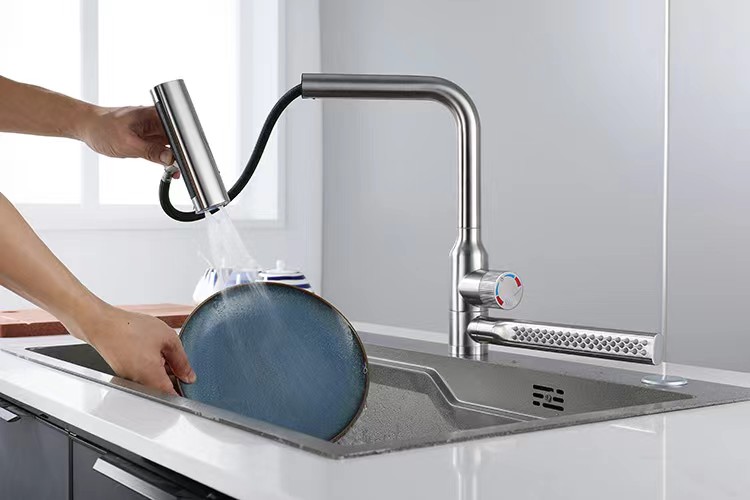 Cold and hot mixing system allows precise temperature and flow adjustments, supporting different cooking and cleaning needs.