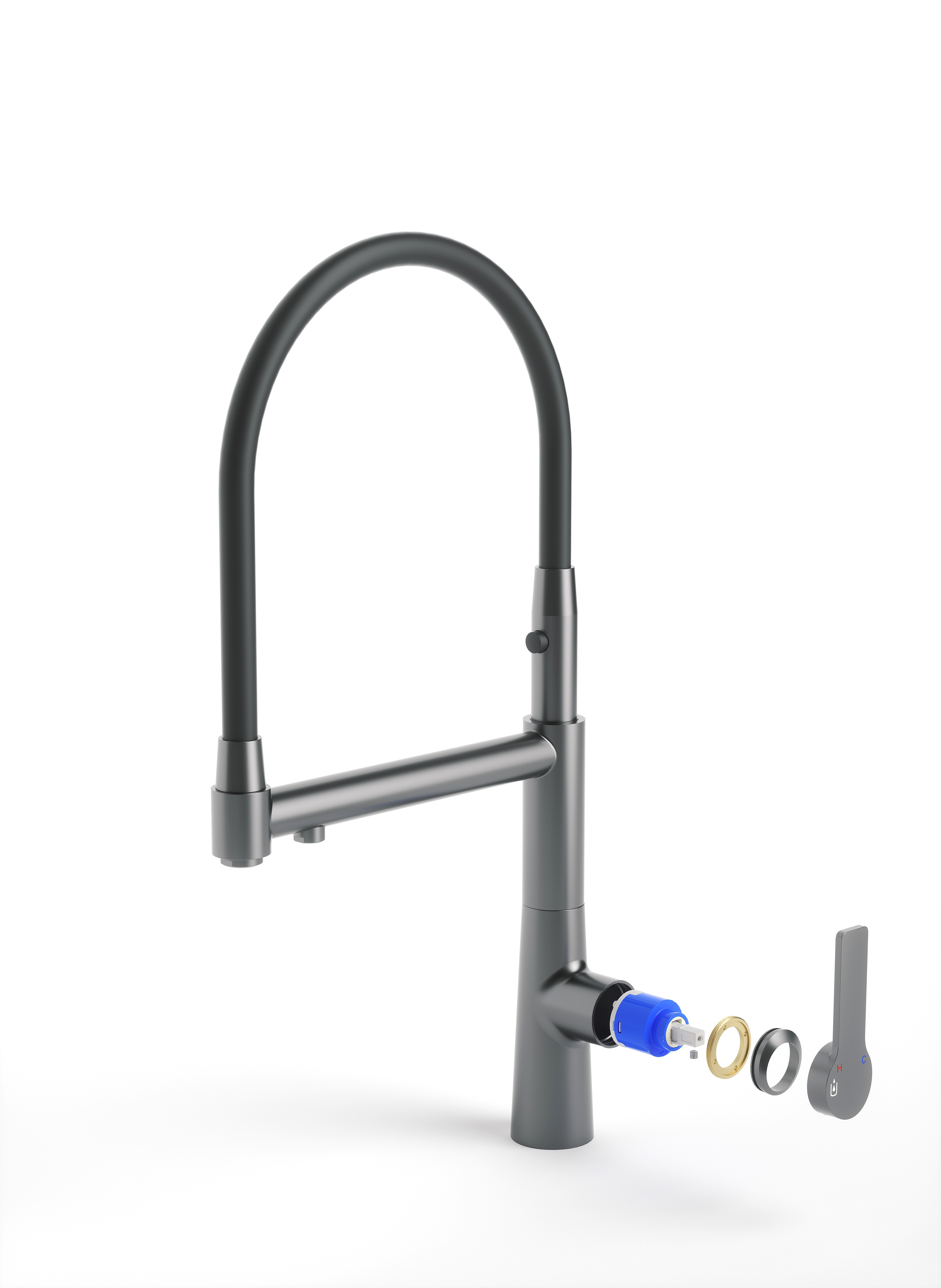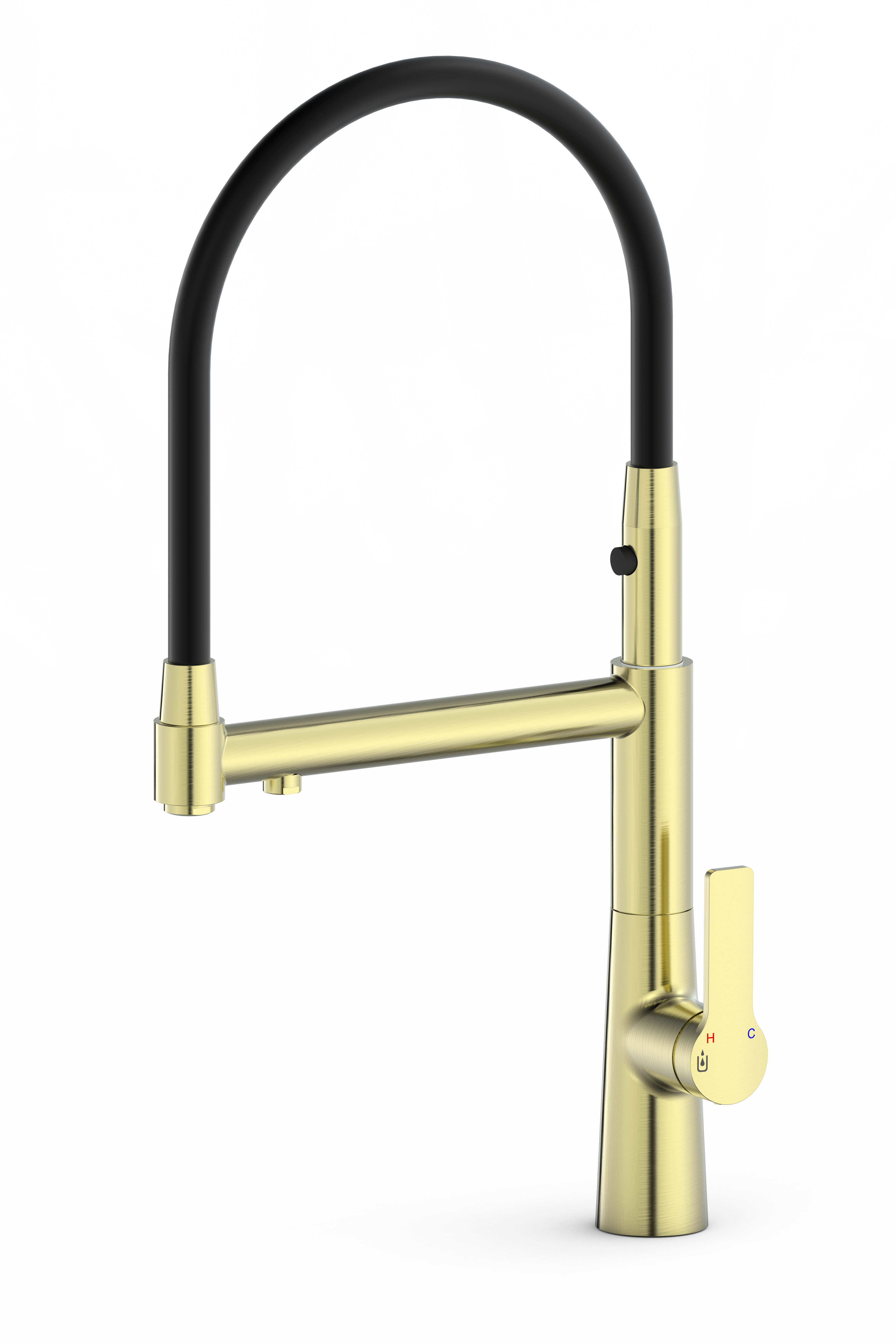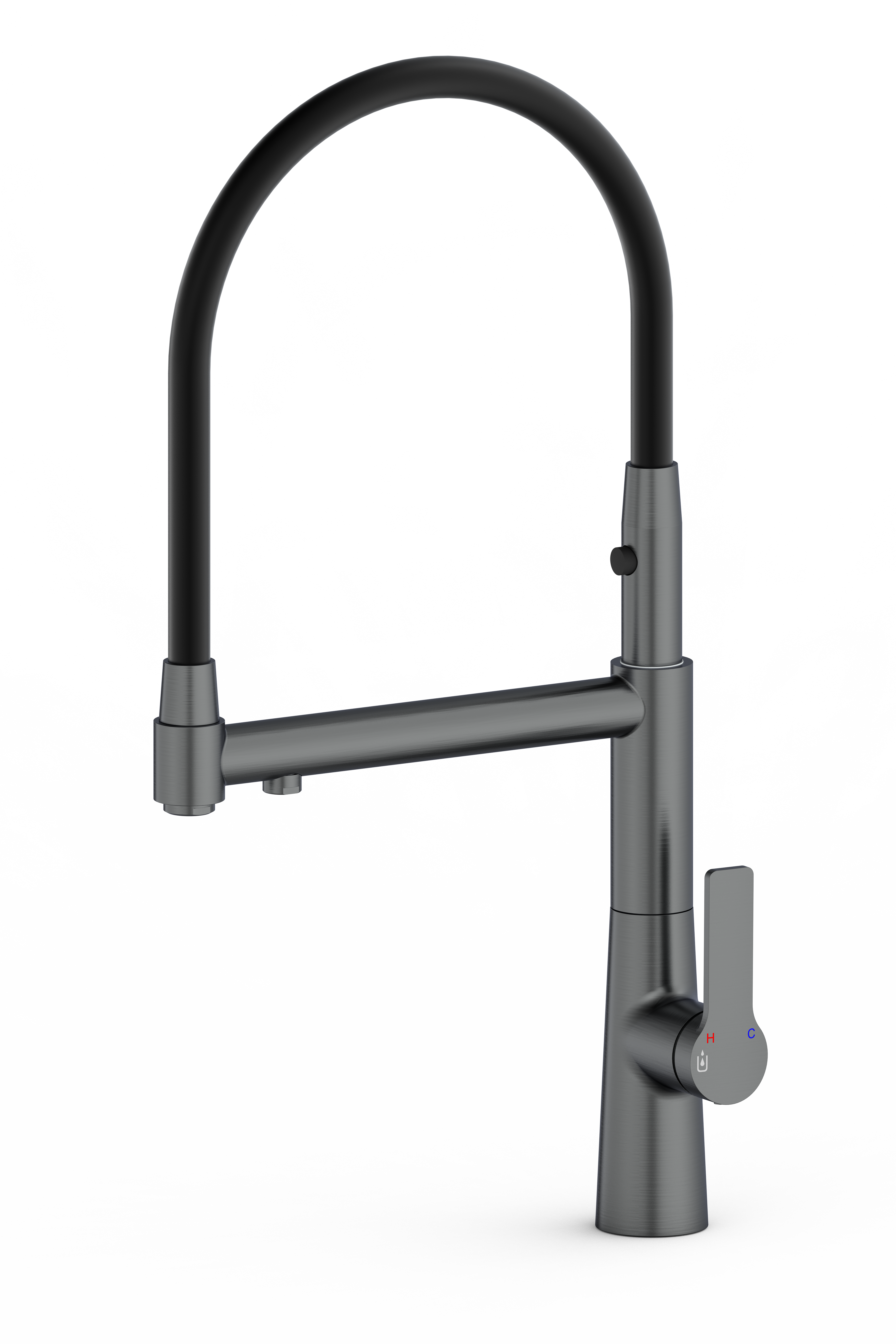 Upgrade your kitchen with this modern dual-control faucet, designed for both style and performance. With its deck-mounted installation, pull-down spray head, and separate hot and cold controls, this faucet is the perfect choice for households that value both convenience and design.
