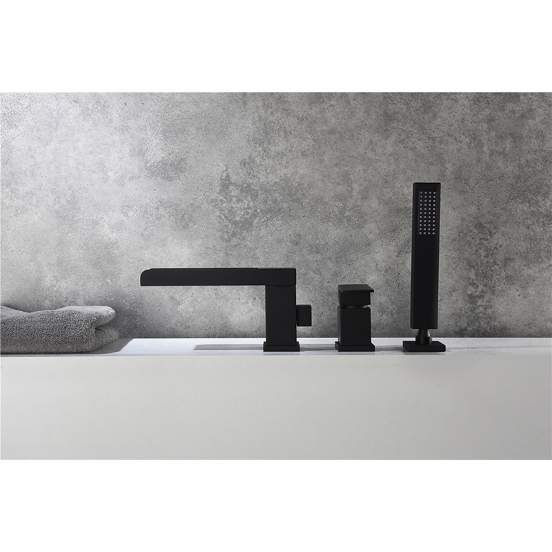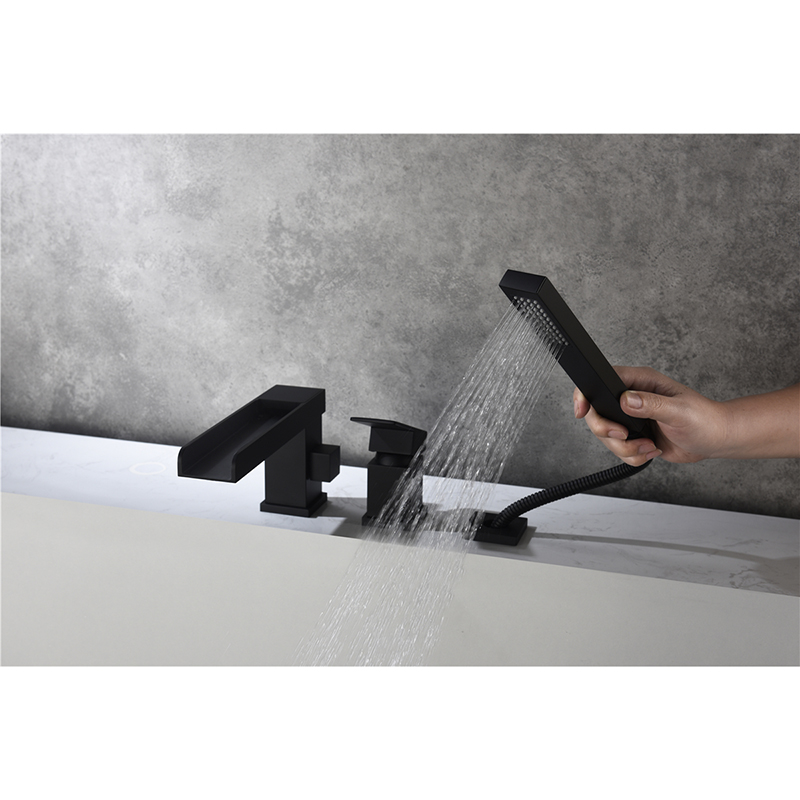 Modern Matt Black Handheld Faucet 3 Hole Bathroom Shower Set