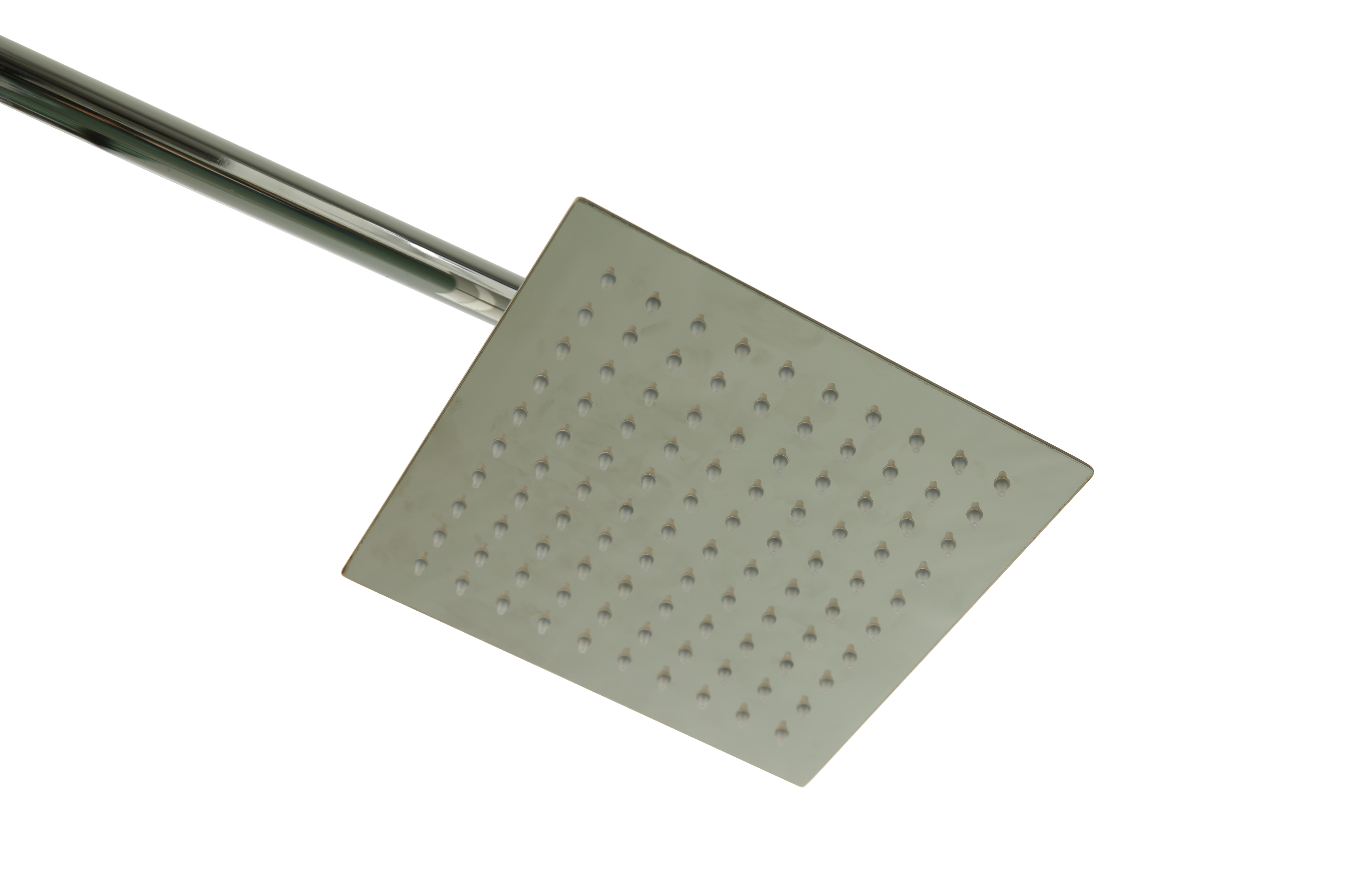 Square Rainfall Shower Head: 12x12-inch design offers wide, even coverage for a luxurious full-body soak.