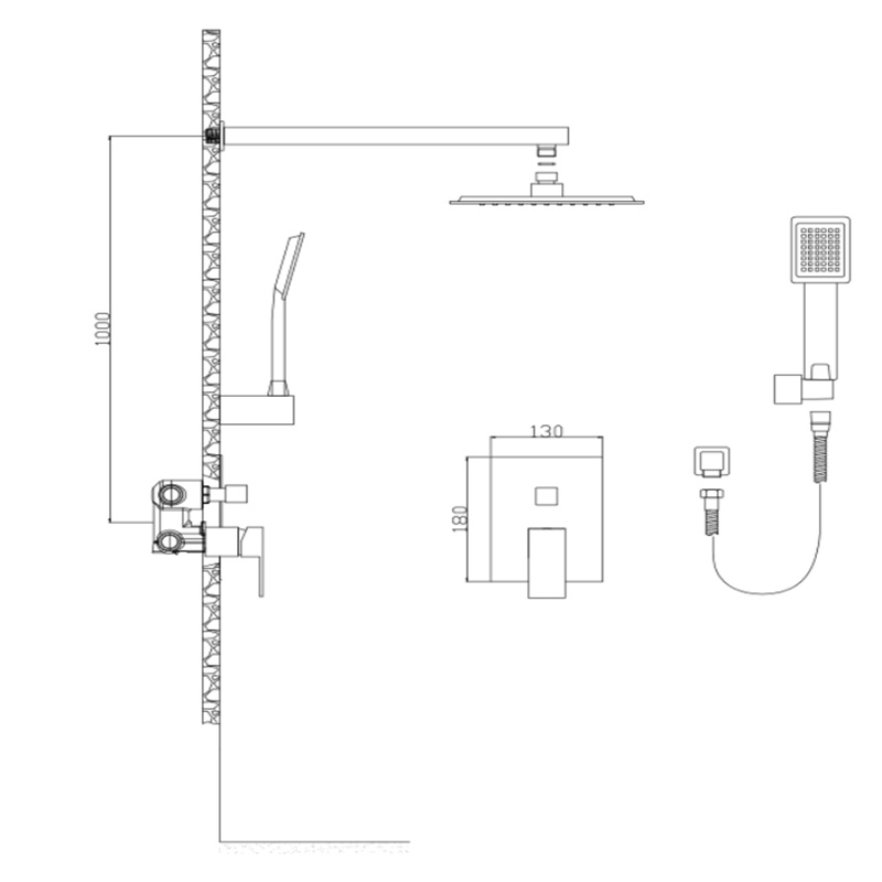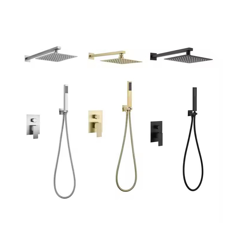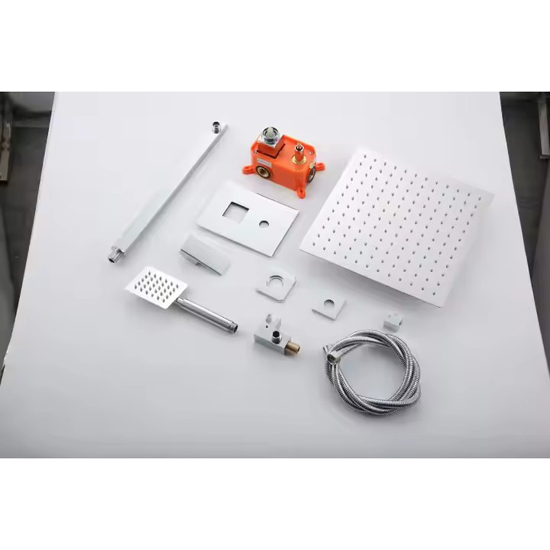 At the heart of this system is a generously sized square overhead showerhead, engineered to deliver a soothing rainfall experience that mimics the tranquility of nature, enveloping you in full-body relaxation. Accompanying this is a streamlined single-handle mixer designed for effortless, precise control of water temperature and flow, ensuring the perfect balance between comfort and efficiency. For added versatility, the set includes a slim, ergonomically designed hand shower with a flexible hose, offering superior convenience for targeted rinsing, bathing, or cleaning.