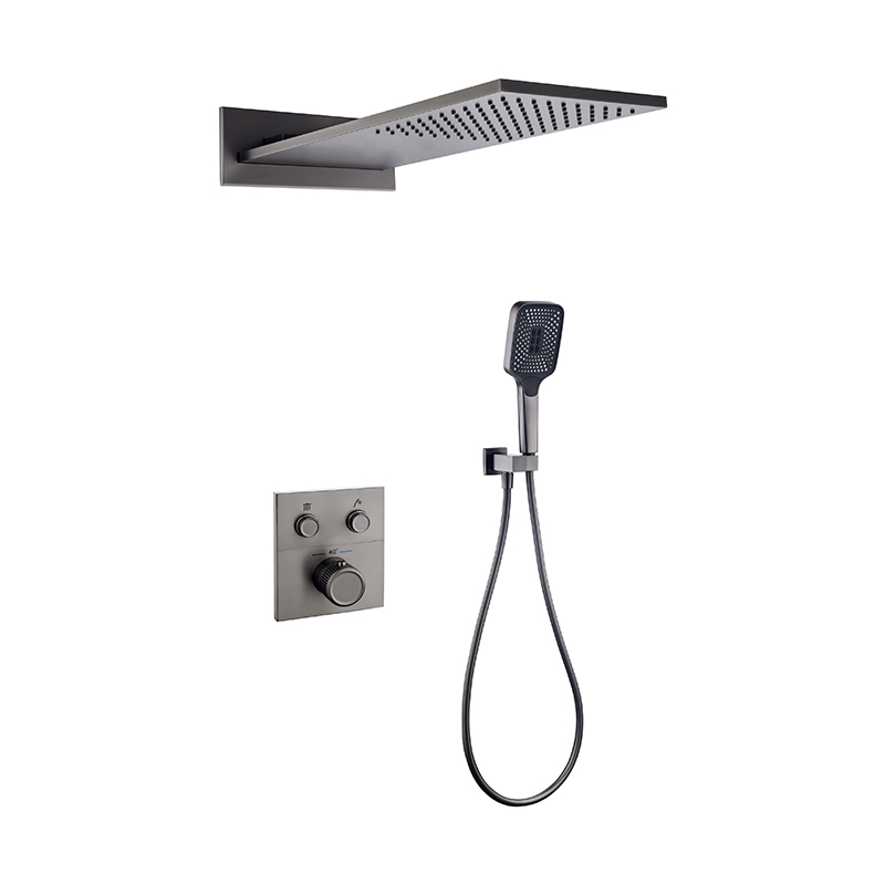 Included Components: Rainfall showerhead, hand shower, thermostatic mixer valve, ceiling arm, hose, and mounting hardware.